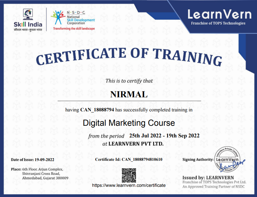 Explore my certifications and credentials that validate my expertise as a Digital Growth Marketer in India. With hands-on experience in marketing, sales, and growth strategies, these certifications reflect my commitment to continuous learning and delivering measurable results. Each certification highlights specialized skills, from Google Ads and SEO to digital strategy, ensuring credibility and proven capability in scaling businesses.